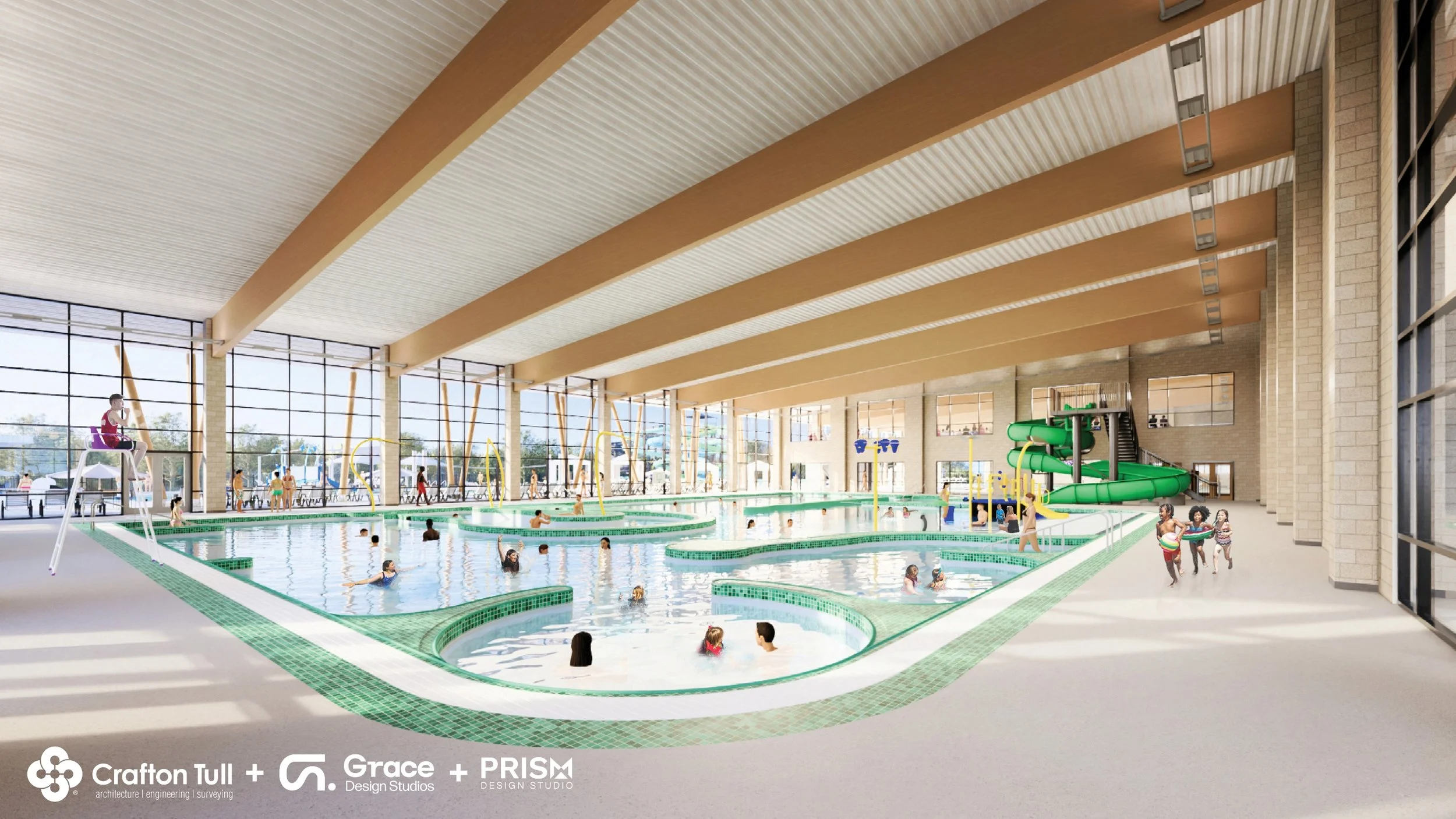 They offer an early look at what the facility could include, such as an indoor lap pool with spectator seating for lessons and team practice, plus family-friendly aquatic features and space for community programming. These are conceptual images, and a final site and design have not yet been selected.