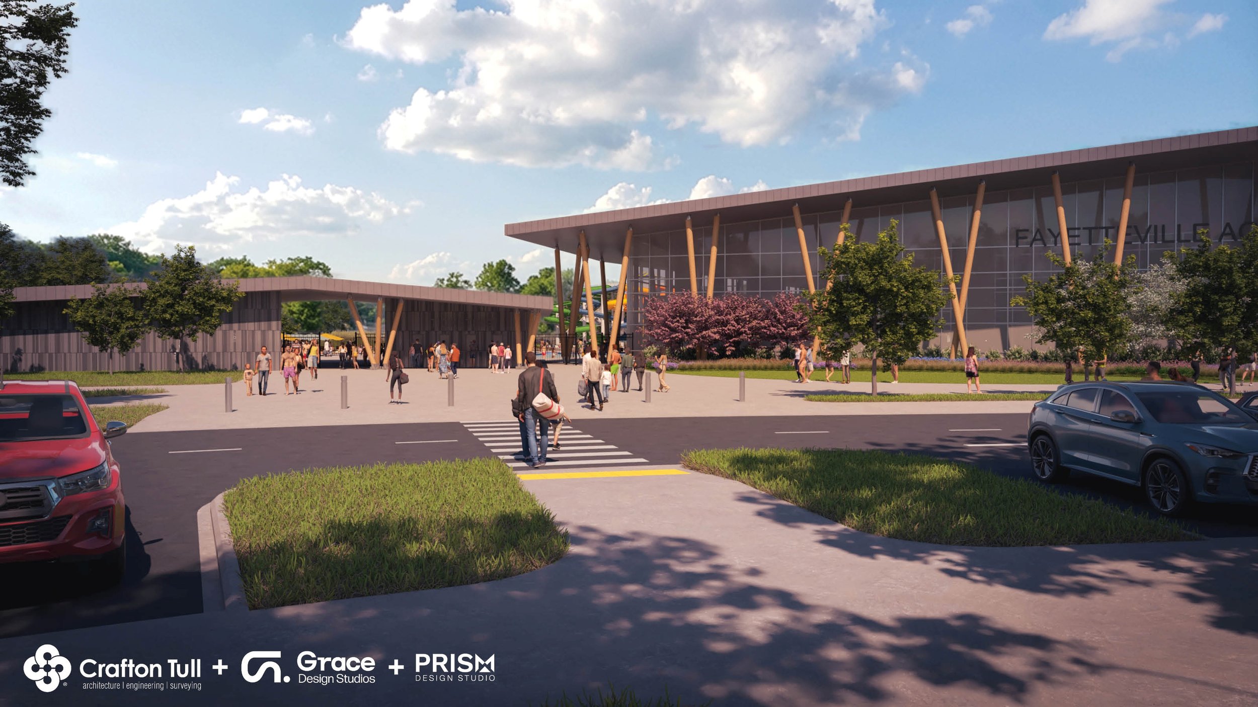 Below are the first conceptual images from the City of Fayetteville of the proposed Aquatics Recreation Center. These images are based on the features that Fayetteville residents said they wanted to see, in a series of citywide surveys open to all residents in 2024 and 2025.